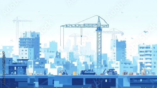 City under construction, cranes, buildings, construction site, urban scene, background action, horizontal image, stock photo