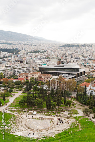 Cityscape including the Theatre of Dionysus and Acropolis Museum, Athens, Greece