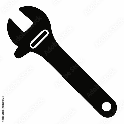 Classic Adjustable Spanner Black Silhouette Vector Design