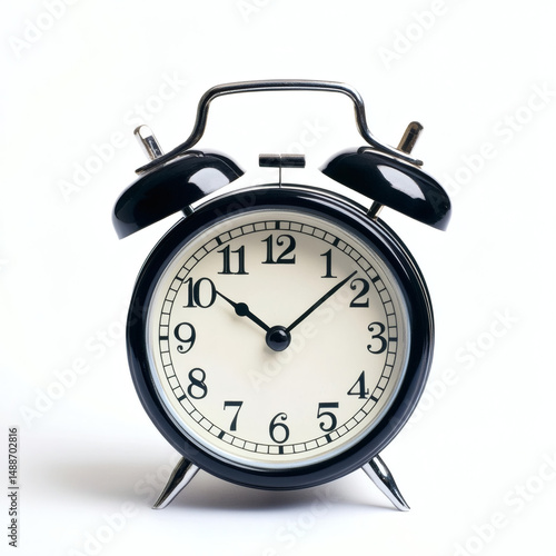 Classic Black Alarm Clock on White Background - Time and Punctuality