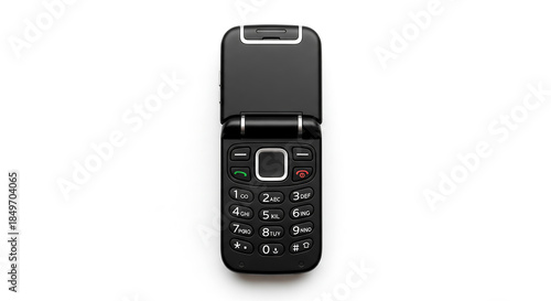 Classic Black Flip Phone Isolated on White Background