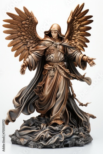 Classic golden sculpture of Archangel Gabriel isolated on white surface
