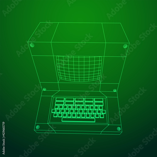 Classic retro perconal computer. Programming code concept. Wireframe low poly mesh vector illustration