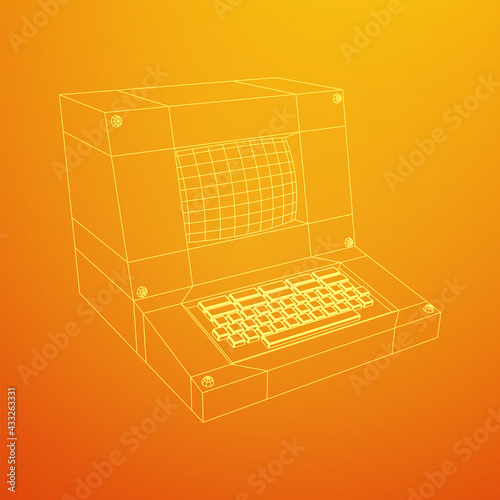 Classic retro perconal computer. Programming code concept. Wireframe low poly mesh vector illustration