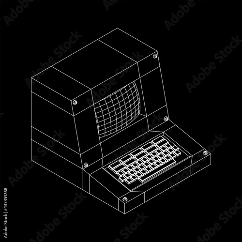 Classic retro perconal computer. Programming code concept. Wireframe low poly mesh vector illustration