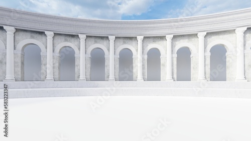 Classic semicircular interior with columns 3d render
