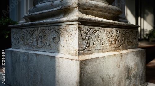 classical. Detailed view of a classical stone pillar with intricate textures and subtle shadows, highlighting architectural beauty. real-estate listings.