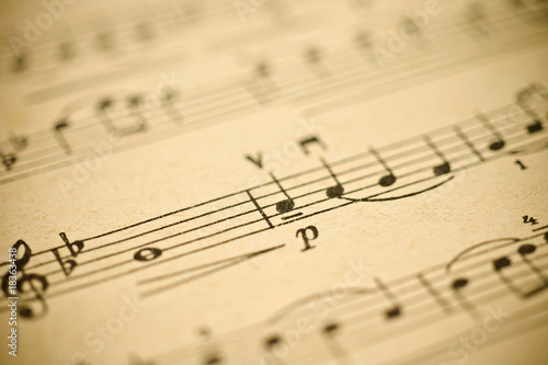 Classical music - notes on yellowed vintage paper sheet