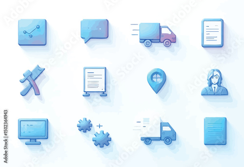 Clean and modern set of business and management icons with a watercolor aesthetic.