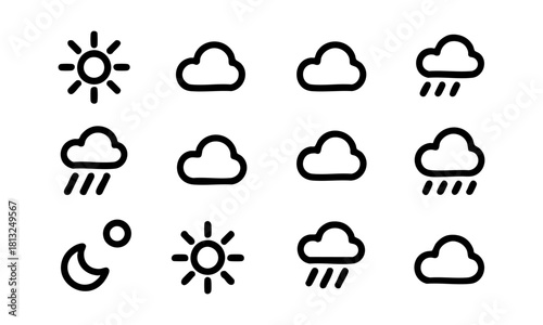 Clean minimal climate icons pack vector illustration, easily editable.