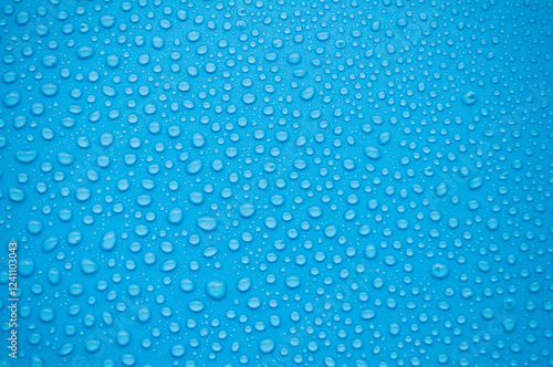Clear water droplets with ocean blue background. Suitable for wallpaper cover design