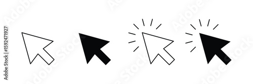Click arrow pointer icon set with outline and filled style including clicking effect for UI design interface vector illustration.
