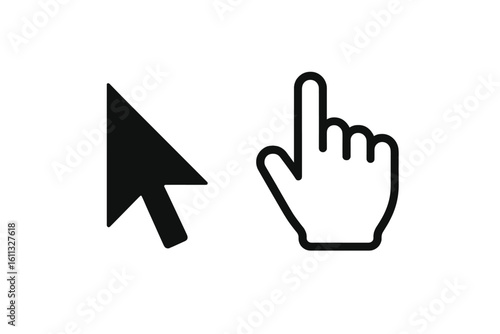 Click cursor icon set with arrow and hand pointers. Computer mouse symbol for web design, UI and UX interface. Vector graphic for navigation, selection, and digital buttons.