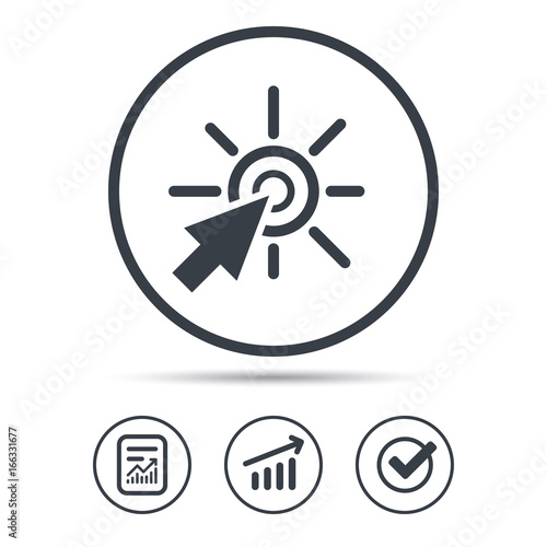 Click icon. Computer mouse cursor symbol. Report document, Graph chart and Check signs. Circle web buttons. Vector