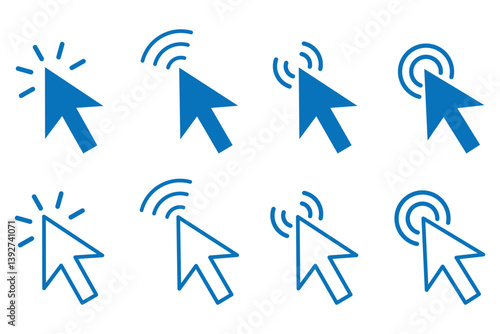 click icon set. hand click icon, cursor icon, Pointer cursor sign and symbol. fill and flat style design on white background eps 10.