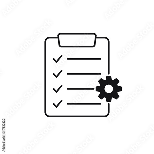 Clipboard with gear isolated icon. Technical support check list icon. Management flat icon concept. Software development.