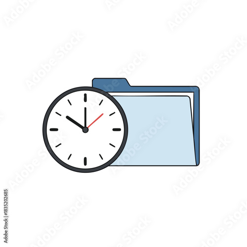 Clock and Folder Icon for Time Management Illustration