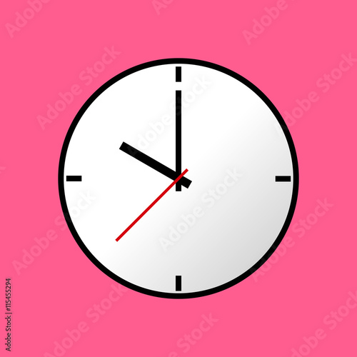 Clock icon, Vector illustration, flat design. Easy to use and edit. EPS10. Pink background.
