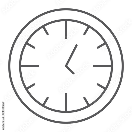 Clock thin line icon, time and dial, watch sign, vector graphics, a linear pattern on a white background.