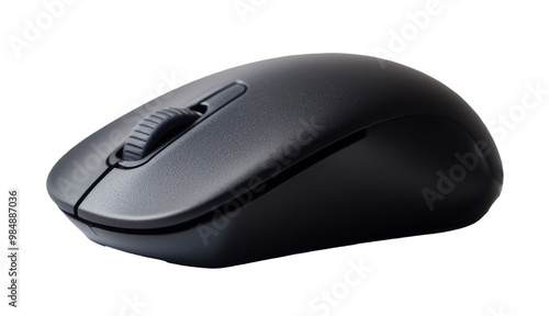 Close up of a black wireless computer mouse. Transparent background