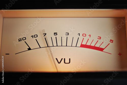 Close up of a studio mixer VU, volume meter. A symbol of music production and recording