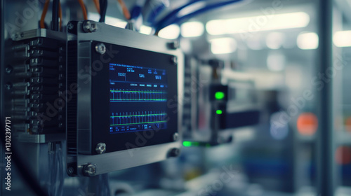 Close up of an electronic device displaying data and waveforms in an industrial setting showcasing advanced testing and analysis capabilities with focus on precision