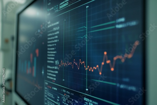 Close up of digital screen showing cancer research trends with graphs and medical symbols