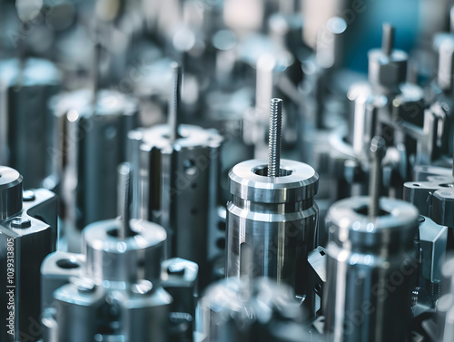 Close up of intricate machinery parts in manufacturing setting, showcasing precision engineering and detailed craftsmanship. image captures complexity and beauty of industrial components