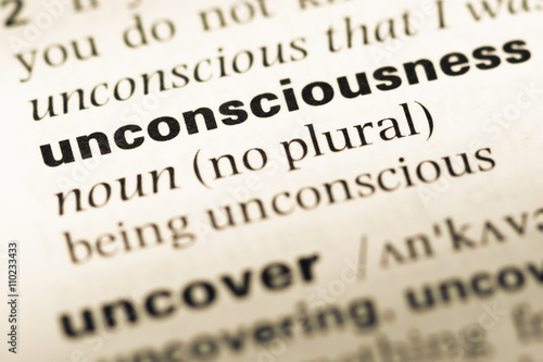 Close up of old English dictionary page with word unconsciousnes