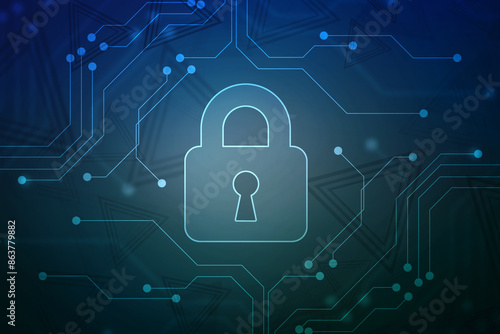 Closed Padlock on digital screen with Flowing binary codes, Cyber Security and safety information, personal data concept. cyber security background, Digital Padlocks on abstract technology background.