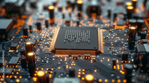 Close-up computer circuit board with central processing unit cpu chip, binary data