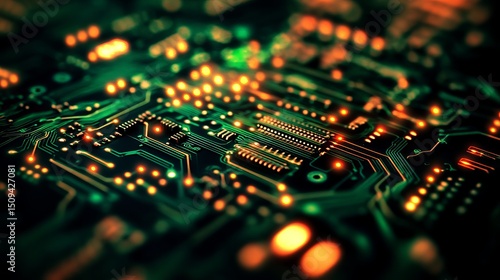 Closeup Detailed Green Circuit Board Technology Background High Resolution Digital Image Electronic Hardware Modern Technology Innovation Futuristic Design Abstract Pattern