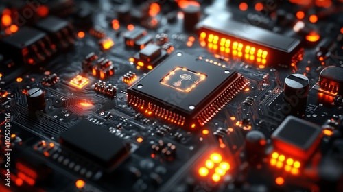 Close-up of a circuit board with glowing components.