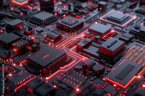 Close-up of a circuit board with glowing red lights. Perfect for technology and innovation concepts