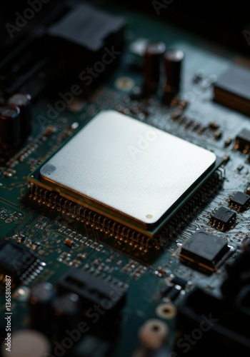 Close-up of a computer processor on a circuit board