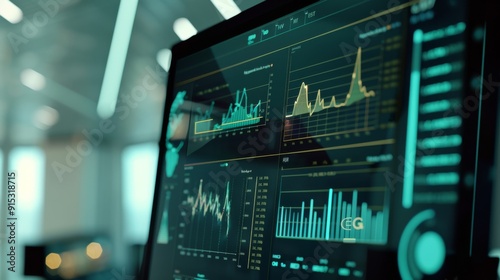 Close-up of a computer screen displaying various real-time data charts and graphs, representing analytical work or monitoring in a modern tech environment.