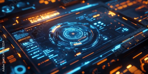 Close-up of a futuristic space interface with holographic controls and glowing data streams, designed for intergalactic navigation