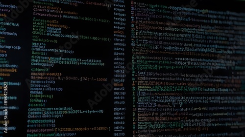"Close-up of a laptop screen showing code in dark mode, set against a dim background. Perfect for tech blogs and coding tutorials."