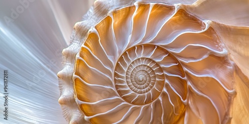 Close-up of a nautilus shell spiral.