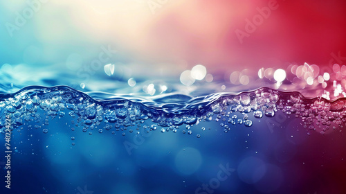 Close-up of a red and blue wave with bubbles, creating a swirling, abstract pattern.