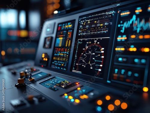 Closeup of a selfdriving ship s remote monitoring system in a control room, representing progress in ship automation