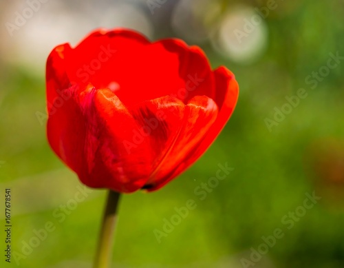 Close-up of a vibrant red tulip
