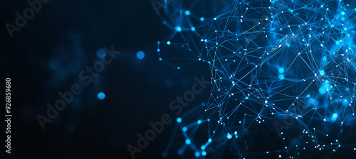 Close-up of complex blue digital network structure. Futuristic technology background.