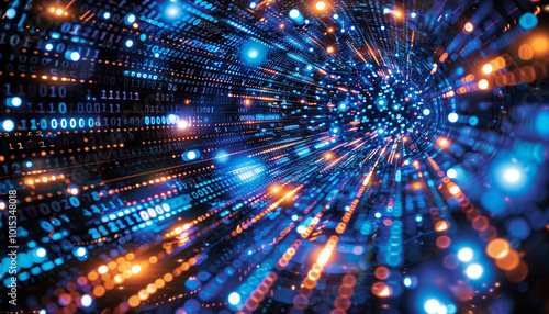 Close-up of Data Streaming in Binary Code with an AI