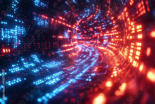 Close-up of digital data streams and binary code