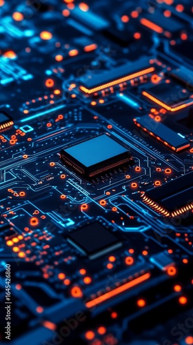 Close-up of glowing circuit board with intricate details