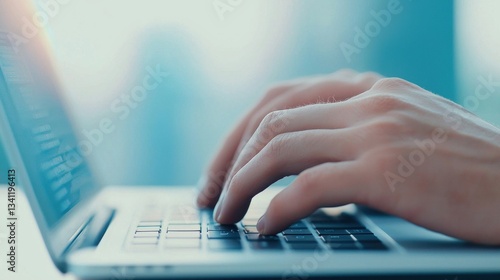 Close-Up of Hands Typing on Laptop Keyboard in Soft Natural Light