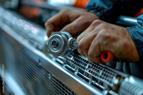 Close-Up of Hands Using a Wrench on Industrial Equipment
