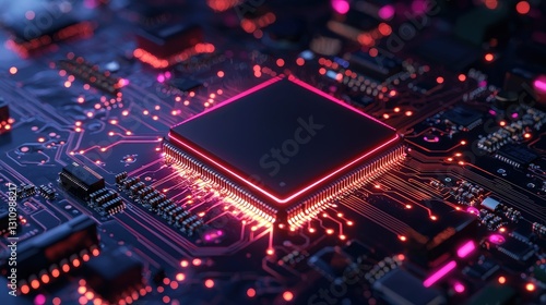 Close-up of illuminated central processing unit on circuit board.