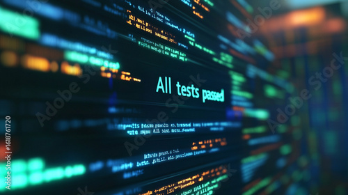 Close-up of JavaScript test framework console showing "All tests passed" message in green